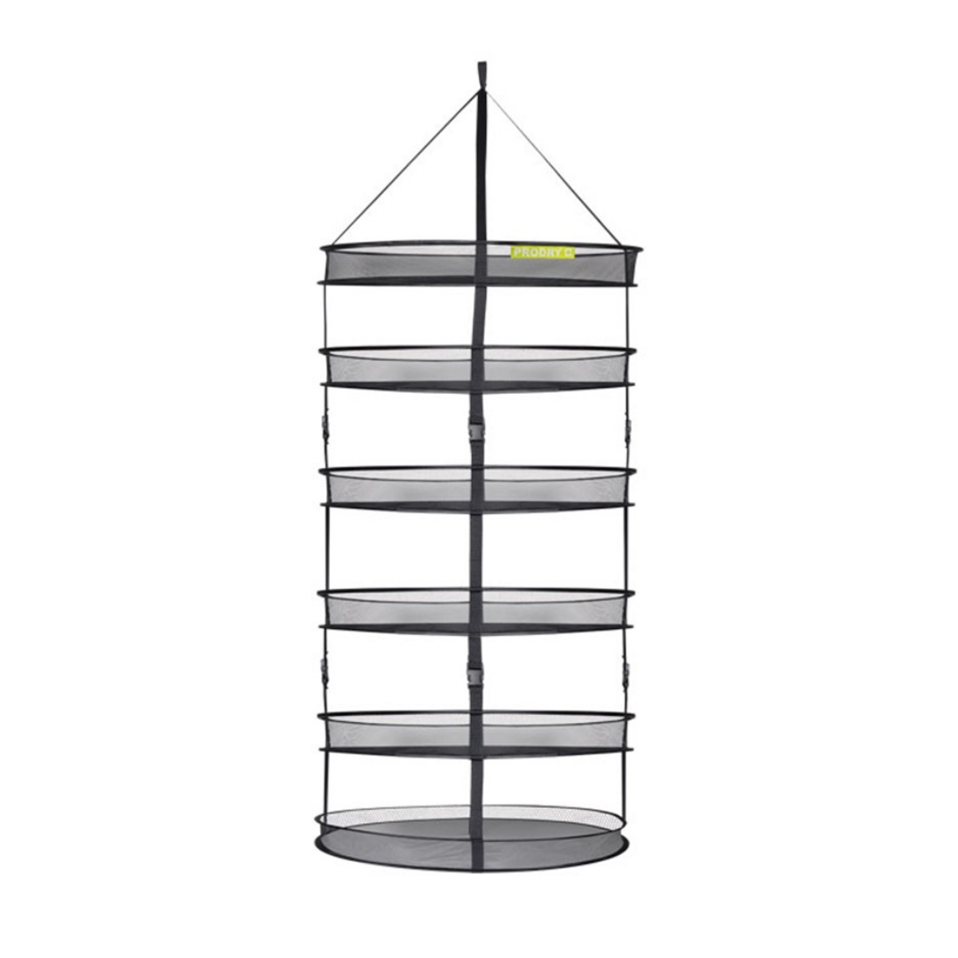 Com 75 cm de diâmetro e 6 andares, ela permite distribuir o material em camadas, favorecendo a circulação de ar entre os níveis. Vários revendedores também destacam que a linha ProDry é dobrável e que os níveis inferiores podem ser removíveis em alguns modelos/lotes.